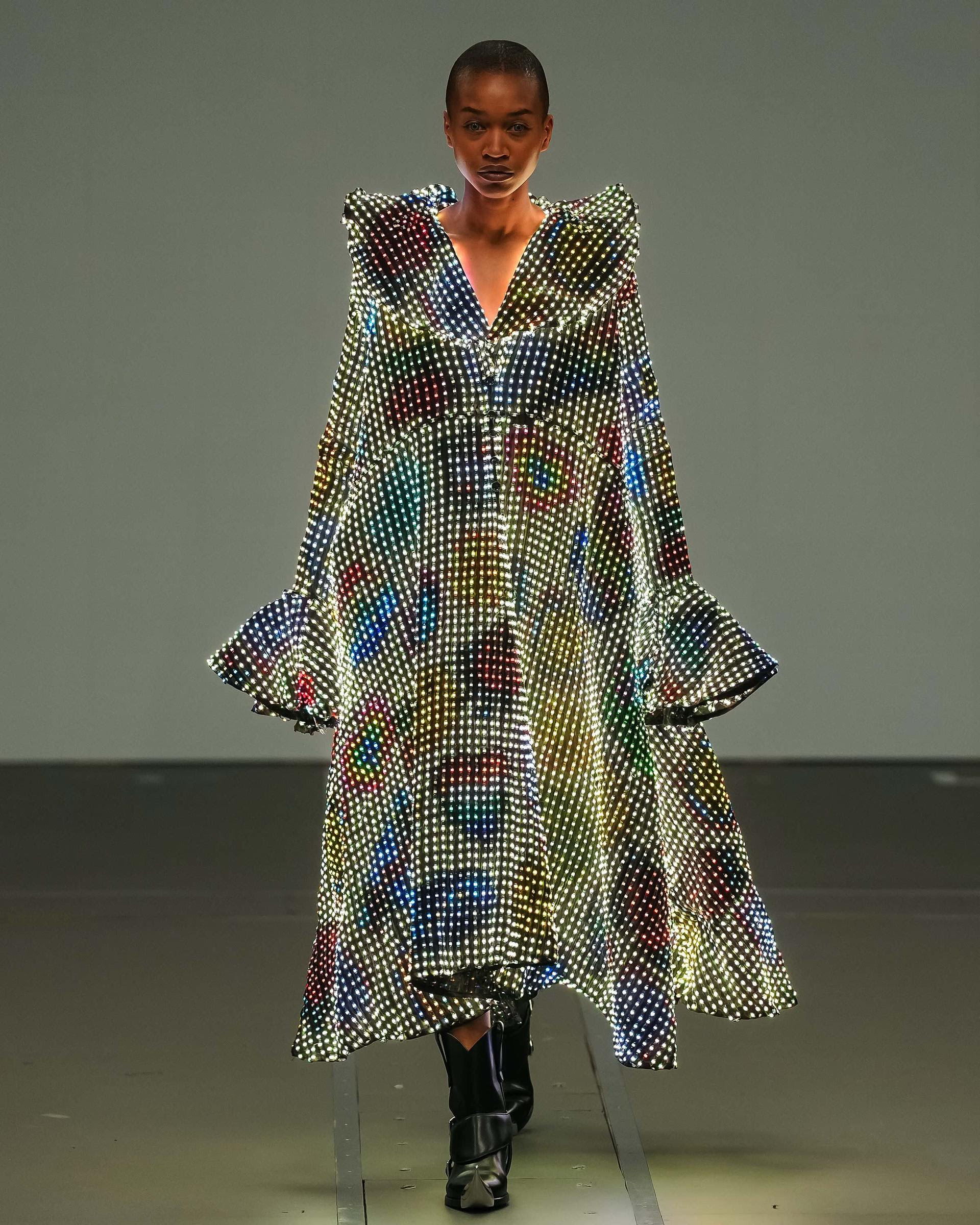 Developed with LED TOKYO, each piece functions as a living surface. The silhouette destabilizes. The body does not hide—it dissolves, becoming visible only in motion.