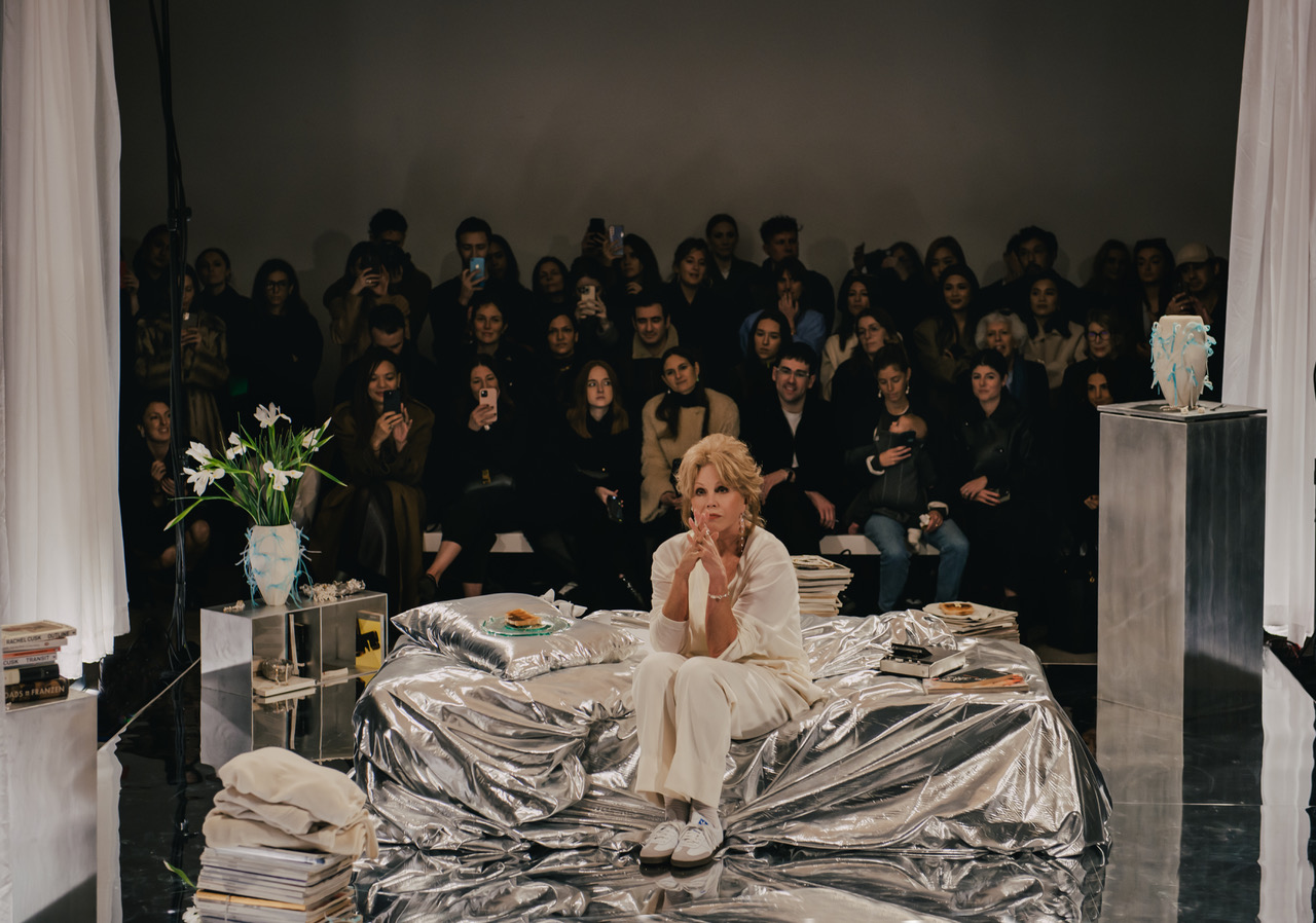 “We liked the idea of a monologue as an alternative to a traditional fashion show, something that weaved in the energy of a live performance. We hoped to create something people can assemble their experiences around. We wanted it to investigate something personal but also be open to elements of the collective experience that are unknown and unknowable.”