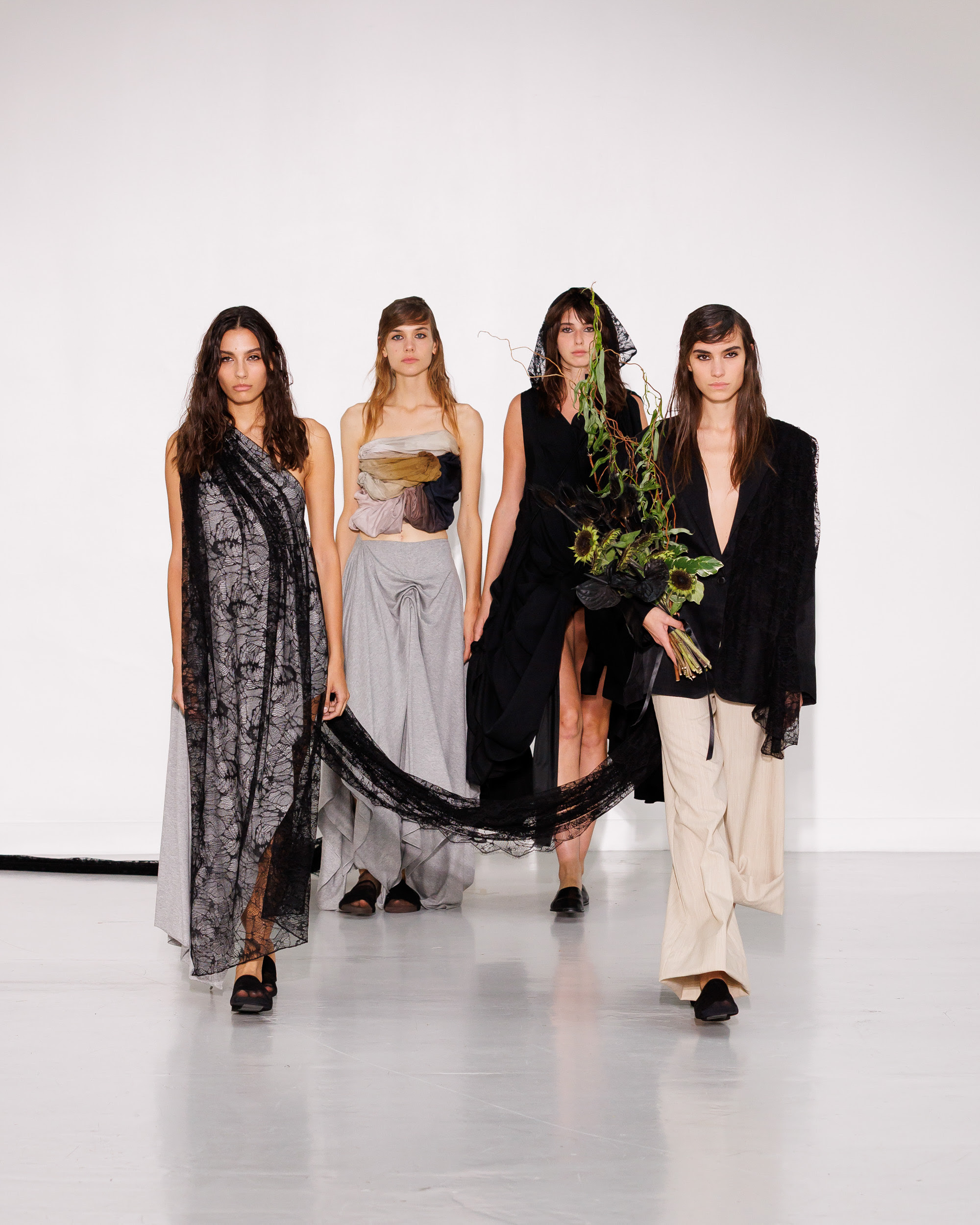 From that encounter came the inspiration for the SS26 collection, rooted in a paradoxical place: a cemetery that becomes a stage, a city within the city where the living and the unseen brush past and coexist.
