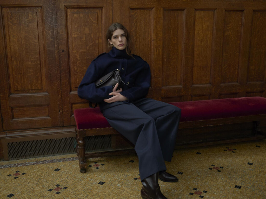 On the menswear side, SANDRO presents a modern, urban attitude through oversized outerwear, layered looks, and relaxed tailoring. A muted palette of black, chocolate, and navy is punctuated by statement leather pieces, emphasizing a balance between structure and fluidity.