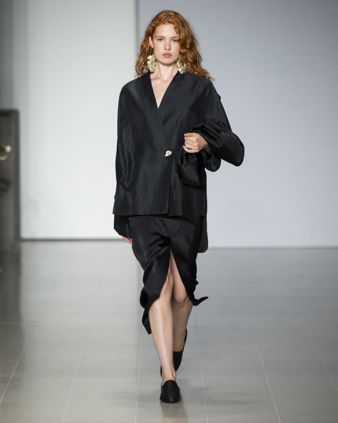 TOVE SPRING SUMMER 2024 Renewed optimism is the sentiment explored in the TOVE Spring Summer 2024 collection. The gradual reawakening of the new season and the promise of languid summer days is mirrored through the effortless ease and subtle sensuality of the collection. Texture rooted in the natural world is explored through heritage Irish linens, shot through with soft sea greens and warm burnished tones, all set back against fresh chalk white. Delicate floral lace adjoins fluid silks in sand toned gold, black and strong vibrant red. While intricate wovens and gauzy tape yarns create relaxed open layers. The confidence of the TOVE woman is reflected through the strength of the refined lines and brutalist architecture of the Hayward Gallery in London. This minimalist environment provides balance with the inherent femininity expressed throughout the collection. Twisted drape details discovered in sustainable jersey dress silhouettes. Clean bandeau necklines afforded to tailored jumpsuits and dresses, softly structured tailoring and the fluttering feathered hemlines of silk chiffon skirts.